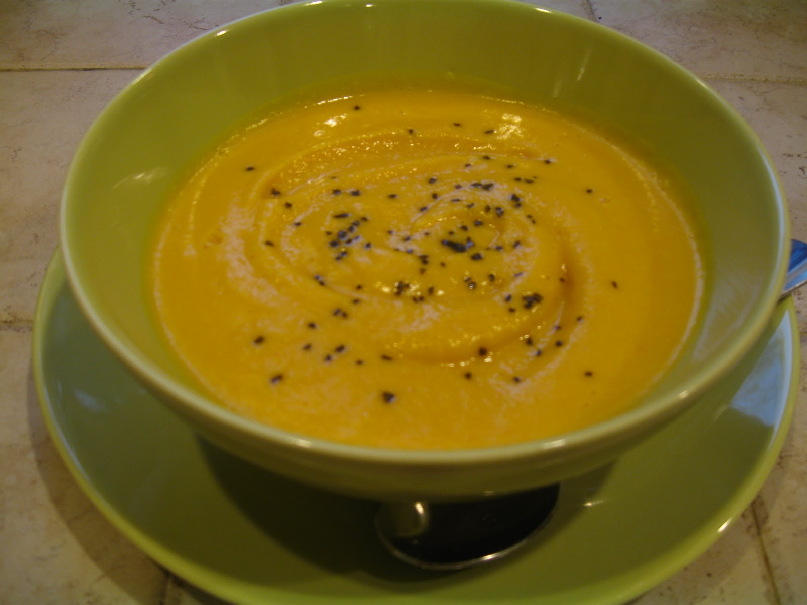 Preheat oven to 425 degrees F and position a rack in the center of the oven. On a baking sheet, toss the Butternut squash and carrots with 1/4 cup of garlic olive oil and season with pink sea salt and cumin. Roast stirring occasionally, until the vegetables are slightly browned and tender, about 25 minutes. In a large pot, heat 2 tablespoons of garlic oil over medium heat. Add onion and cook, stirring often, until they begin to brown, about 5 minutes. Add the chicken stock. Simmer for 10 minutes. Remove from the heat and add the roasted vegetables. Puree the soup using an immersion blender, or transfer to a blender or food processor. Puree until smooth. Return to the heat, add the cream and adjust the seasonings. Sprinkle Hawaiian Black Lava sea salt before serving for garnish and taste.